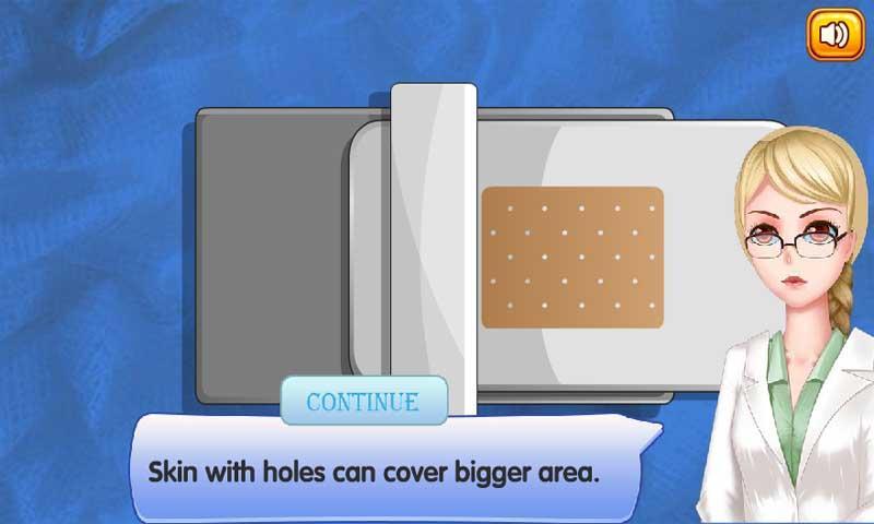 She needs a skin grafting surgery now!Use the medical tools to perform the surgery.
